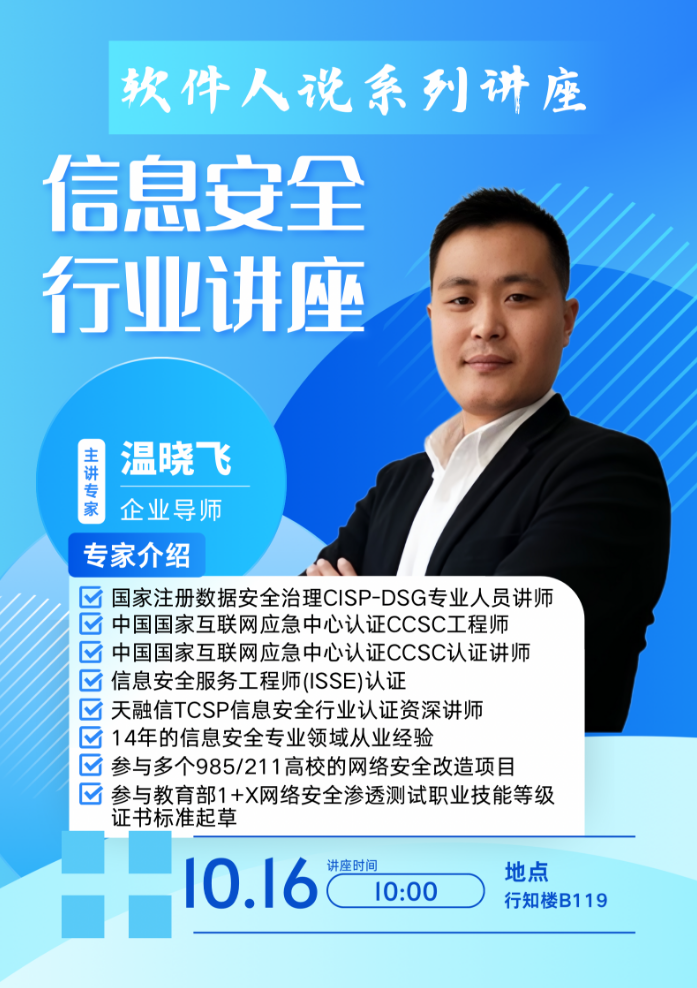 活动预告 | 软件人说系列讲座之信息安全行业讲座