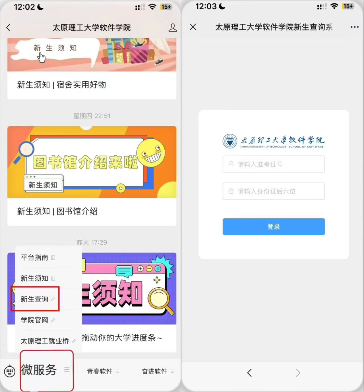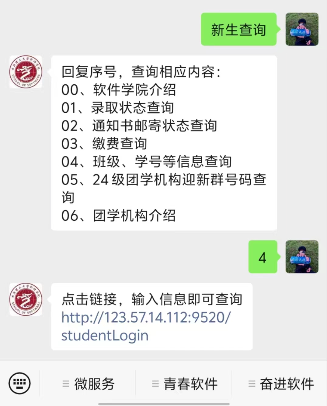 为保证同学们顺利报到、注册,学院特别开通新生信息查询系统,具体方法如下: