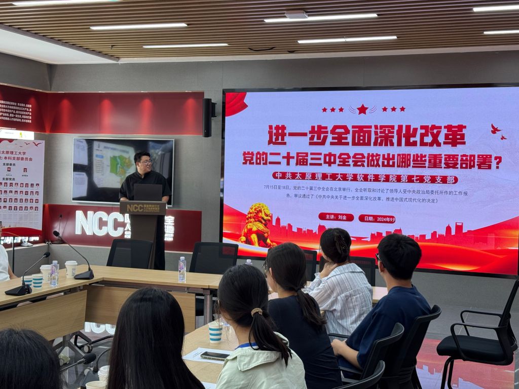 9月27日,MS88官方网站软件第七本科党支部在武汉天融信基地党员活动室集中学习了党的二十届三中全会精神。