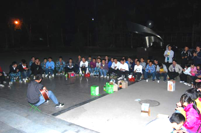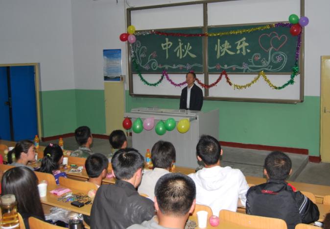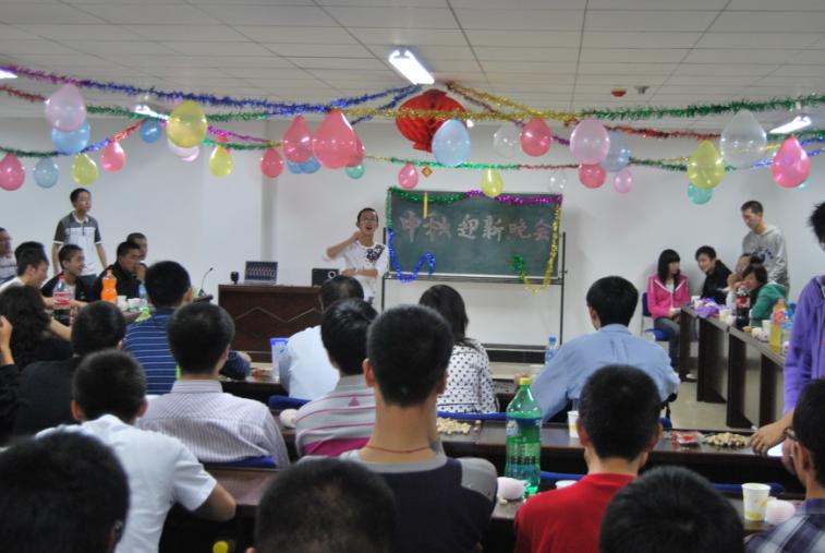 晚上,院领导及辅导员又分别参加了各排或班举行的中秋迎新联欢晚会,有的在阶梯教室、有的在会议室、有的在合班教室,还有的在露天广场,辅导员、教官和新同学们,在很短的时间内,组织了丰富多彩的节目,有独唱,有宿舍小合唱,有小品,有独奏,有舞蹈,有朗诵,还有魔术,等等,充分展示了新同学们多才多艺的文化素养,表达了新同学们对大学新生活的向往和憧憬,也寄托了对家乡亲人的思念和祝福,同时也增进了同学之间的友情。