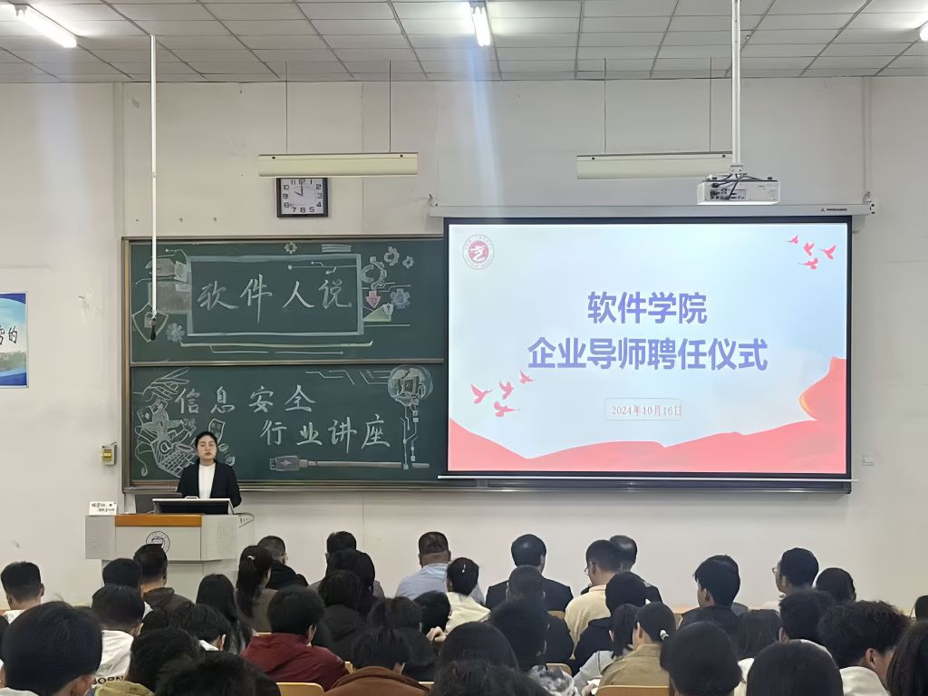 10月16日,公司在行知楼B119举办“软件人说”系列讲座之信息安全行业讲座。本次讲座特邀天融信TCSP信息安全行业认证资深讲师温晓飞老师主讲,软件公司党委书记张文基、副经理曹锐,天融信校企事业部总经理刘洋,软件公司辅导员和各年级员工代表参加。讲座由员工工作办公室副主任张瑞琪主持。