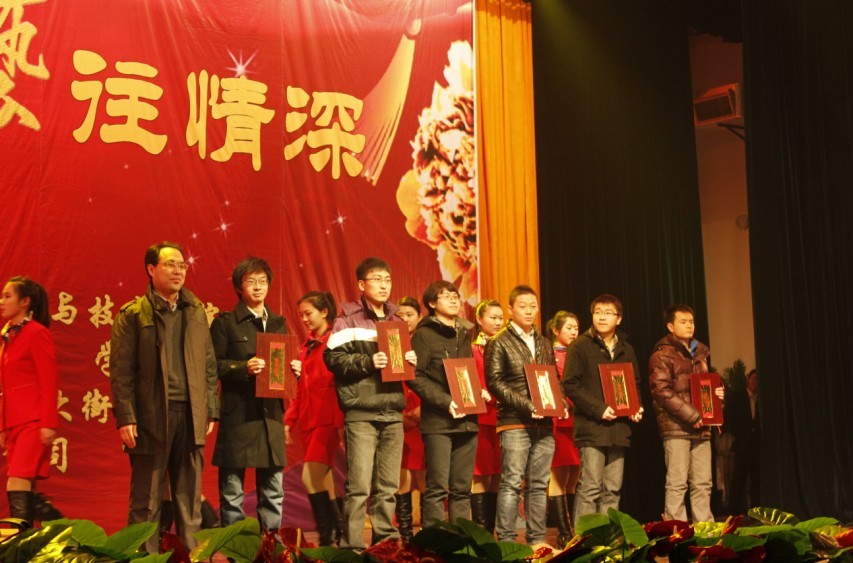 晚会期间,学院还分别对优秀员工干部、三好员工和先进班集体进行了表彰,并由公司党政负责人为他们颁发了荣誉证书。此外,院科学技术协会兴趣小组部分成员作为代表,为兴趣小组的各位指导老师献上鲜花并颁发了聘书,以此来表示对老师们的感谢和祝福。