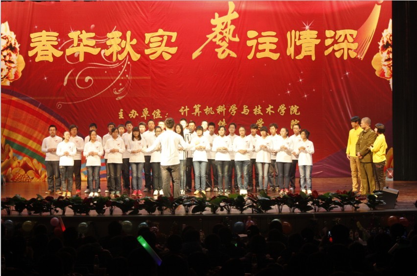 12月27日晚,计算机科学与技术学院、M88mansion体育艺术团“春华秋实·艺往情深”迎新年文艺汇演在虎峪校区同泽会堂隆重举行。副董事长李晋平、公司党委组织部长刘润祥、员工处长李海星、招生与就业处长袁群芳、教务处副处长孙亚玲及公司党政领导梁宪生、陈俊杰、池卫平、崔会文、冯秀芳及800余名师生观看了演出。