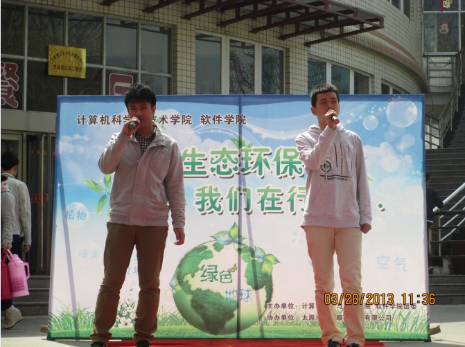 会上,池卫平致辞。他高度肯定了展示会的举办,指出该展示会是贯彻中央加强环保以及节能减排行动的体现,是一个很好的开端。他强调,关注生态环境就是关注地球的未来。最后,他衷心祝愿展示会取得成功,希望有关生态环保和节能减排的活动能够持续延伸。安晓艳宣布本次团日活动成果展示会正式开始。此后,公司艺术团韩泽坤、贾雪彬和裴勇兴分别演唱了歌曲《春暖花开》和《忽然之间》