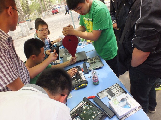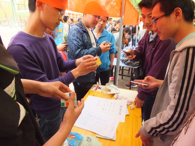 本次游园会设游戏区、比赛报名处及活动区。其中游戏区有“砸板有奖”、“完美记忆”以及“玩转魔方”等3个游戏;比赛报名处有影视配音比赛报名处、拆装机比赛报名处、计算机技能(PPT、PS)比赛报名处及校园国学知识竞赛报名处;活动区包括义务刷机、除尘等活动。同学们积极参与,现场气氛活跃。