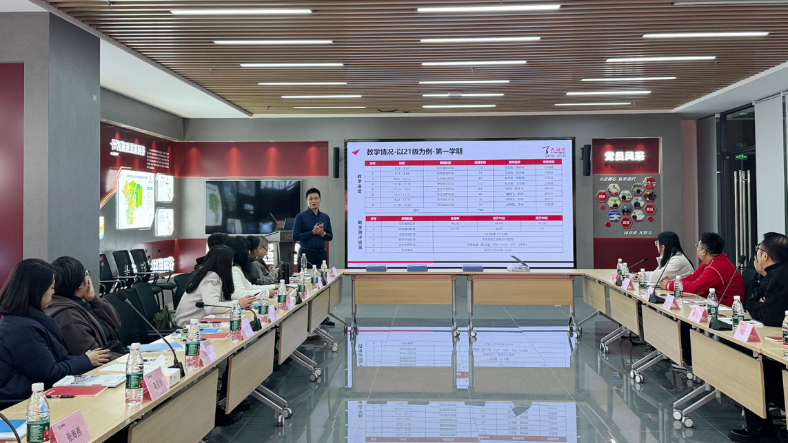 座谈交流环节中,天融信教育的温晓飞、季珈萱与郝鸿杰分别对公司及基地情况、员工教学进度、员工管理工作、就业工作开展等方向进行了详细介绍。宋燕对天融信实训实习工作表示高度认可。随后,双方就员工学习情况和就业等方面展开了热烈的讨论,提出了许多建设性的意见和建议,为学院和企业在人才培养与运营管理等多方面的持续改进提供了有益的参考。