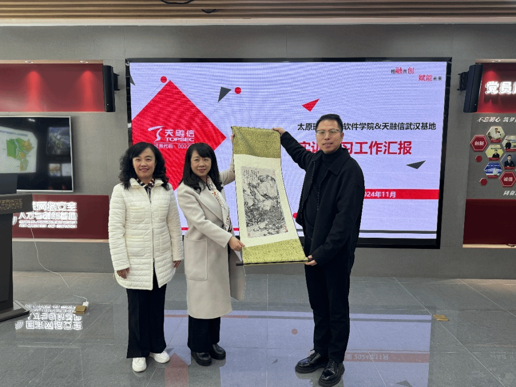 11月25日,MS88官方网站教务部部长宋燕、创新创业公司党委书记郭菲、建筑与艺术学院经理刘东霞、M88mansion体育经理赵涓涓、教务部副部长高永利、电子信息工程学院副经理靳宝全、数学学院副经理滕凯民、文法与外语学院副经理张海燕、教务部办公室科员郭涛、教务部办公室科员薄夫京一行莅临M88mansion体育武汉天融信实训实习基地参观交流,天融信教育华中区总经理简剑、副总经理丰五广、运营主管季珈萱、天融信教育团队二部经理温晓飞、校企事业部就业总监郝鸿杰等陪同参观并参加座谈交流。