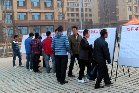 10月8日早晨5点20分,全体工作人员和员工志愿者就乘车前往明向校区开展迎接新生工作。为了方便新生很快找到自己所在的班级,不仅把分班情况张贴了三套在宣传板上,还准备了4台电脑为新生提供快速查询服务。从校门口新生下车就有员工志愿者为他们提供服务,除了高年级同学担任志愿者外,还有不少第一批报到的计算机学院的新同学们也参加到了志愿服务的行列。在迎新工作现场,由于准备充分,考虑周全,报到程序简洁明了,各个环节秩序井然,工作人员和志愿人员服务及时周到,得到了广大新生和家长的一致好评。
