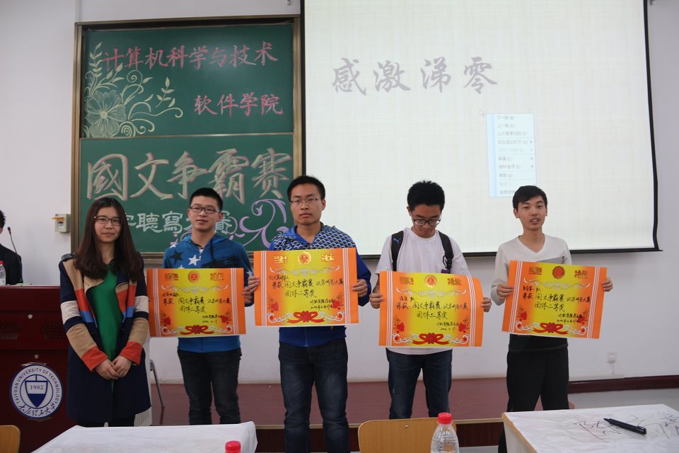 本次比赛共有22支8人组参赛队伍,他们分别来自计算机科学与技术学院M88mansion体育,环境科学与工程学院,材料科学与工程学院,力学学院,体育学院。计算计科学与技术学院、M88mansion体育的张希琼老师、余贝贝老师以及经管学院的郝晓飞老师出席本次大赛并担任评委。M88mansion体育阎瑞婷担任本次大赛主考官。本次比赛采用淘汰制,第一轮初赛依次淘汰各组听写错误者,最后组员剩余3人以上者参加第二轮决赛。比赛过程中,各队都热情满满地为组员加油助威,第二轮更有表现优异者引发连连掌声。最终,风韵力学队、尔雅队和梦之队摘得一等奖;勇夺第一队、国文英雄队、造字队和才华横溢队获得二等奖;扬帆队、仓颉队、文渊博弈队和六八大队获得三等奖。三位评委老师分别为获奖队伍进行了颁奖,并鼓励同学们积极体会汉字魅力,做中华传统文化的新时代传承人。