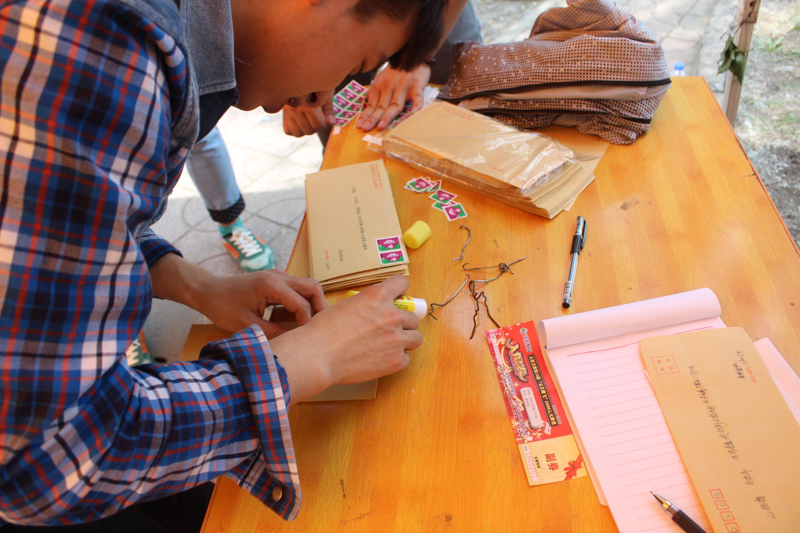 活动现场提供免费信封、信纸和邮票,工作人员邀请路过的同学将自己想对母亲说的千言万语寄给母亲。温情的的主题加契合的的形式不断吸引参与者前来。大家都认真组织语言,把内心最柔软的地方展示给母亲,借手中的信把说不出口的感激传递给母亲。音响里不断传出优美而感染人的歌曲,如南拳妈妈的《家》和张含韵的《妈妈 我爱你》等,更加激起大家对母亲的无限思念和由衷感恩。而电视屏幕里循环播出的为妈妈洗脚的公益广告页让人不禁湿了眼眶。而同时进行的抽奖环节亦让现场气氛更加活跃。