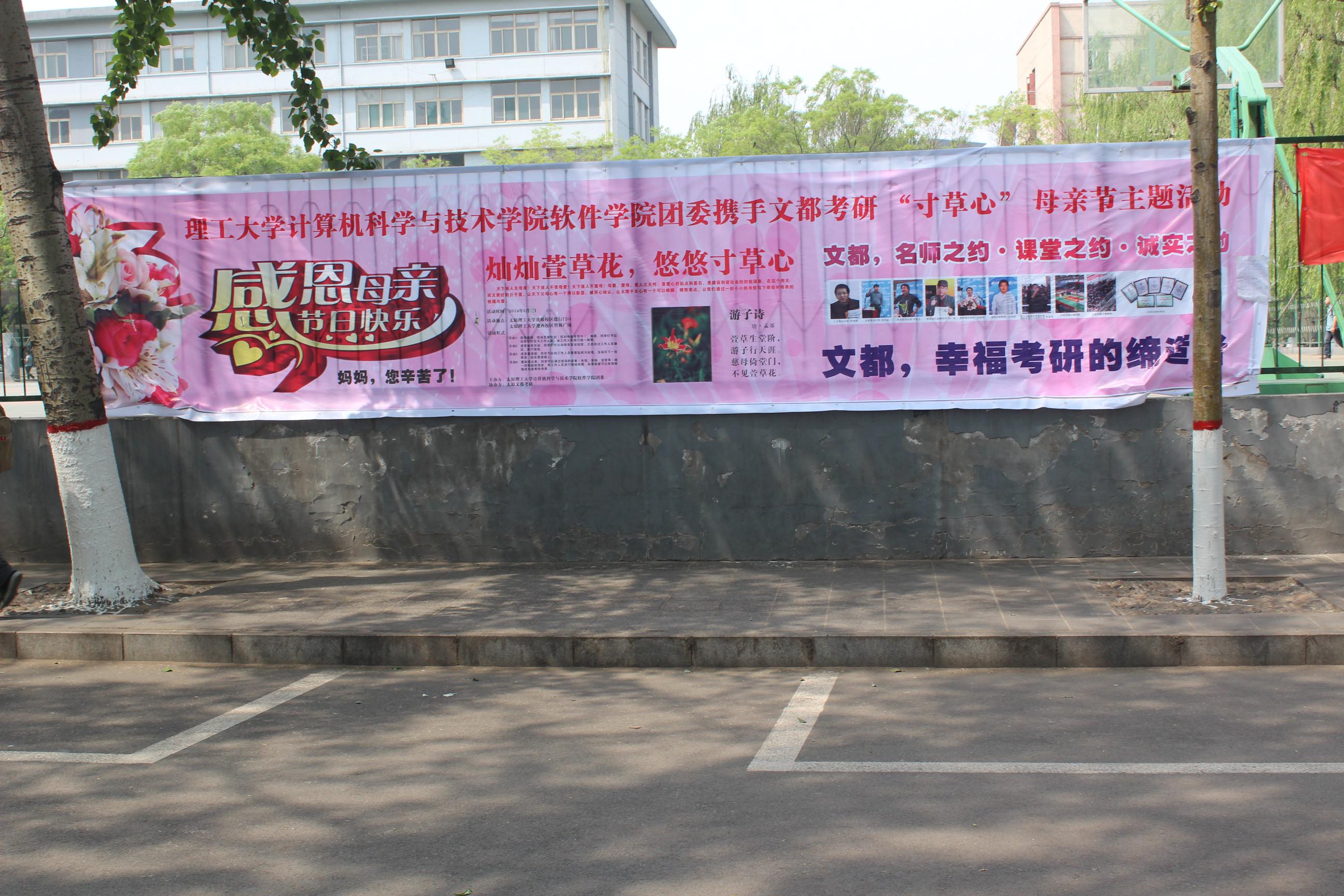 5月8日,母亲节来临之际,公司在虎峪校区建行门口及迎西校区智林广场举办“寸草心”母亲节主题活动。本次活动由公司团委主办、艺术团协办,由文都考研特别赞助。