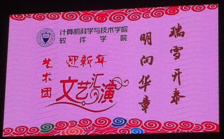 2014年12月26日晚,计算机科学与技术学院、M88mansion体育“瑞雪开泰 明向华章”迎新年文艺汇演在MS88官方网站明向校区员工活动中心隆重举行,此次晚会由学院艺术团主办,院团委、员工会、科协、红旗志愿者中心协办。公司党委书记梁宪生,党委副书记池卫平,学工办副主任郭飞,团委书记王飞,团委副书记李欣怡,以及2013级、2014级辅导员和600余名师生共同观看了演出。