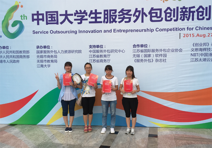 经过8月28日至29日两天的激烈角逐,第六届中国老员工服务外包创新创业大赛总决赛在江苏无锡圆满落幕。本届大赛在公司招就处的指导、支持下,由计算机科学与技术学院、M88mansion体育组队参加,公司系首次参加。自2015年3月开赛以来,历经团队素质测评、项目初审、网上展示及决赛答辩等环节的精心组织,公司代表队首次参赛表现优异。由张泽华、陈健老师指导的SCube团队(宋文婷、沈同乐、张琛、张茹和李晓红),完成企业类命题“医疗信息移动应用系统解决方案”,荣获全国总决赛二等奖。牛保宁和陈永乐老师指导的队伍分别获得创业类三等奖。
