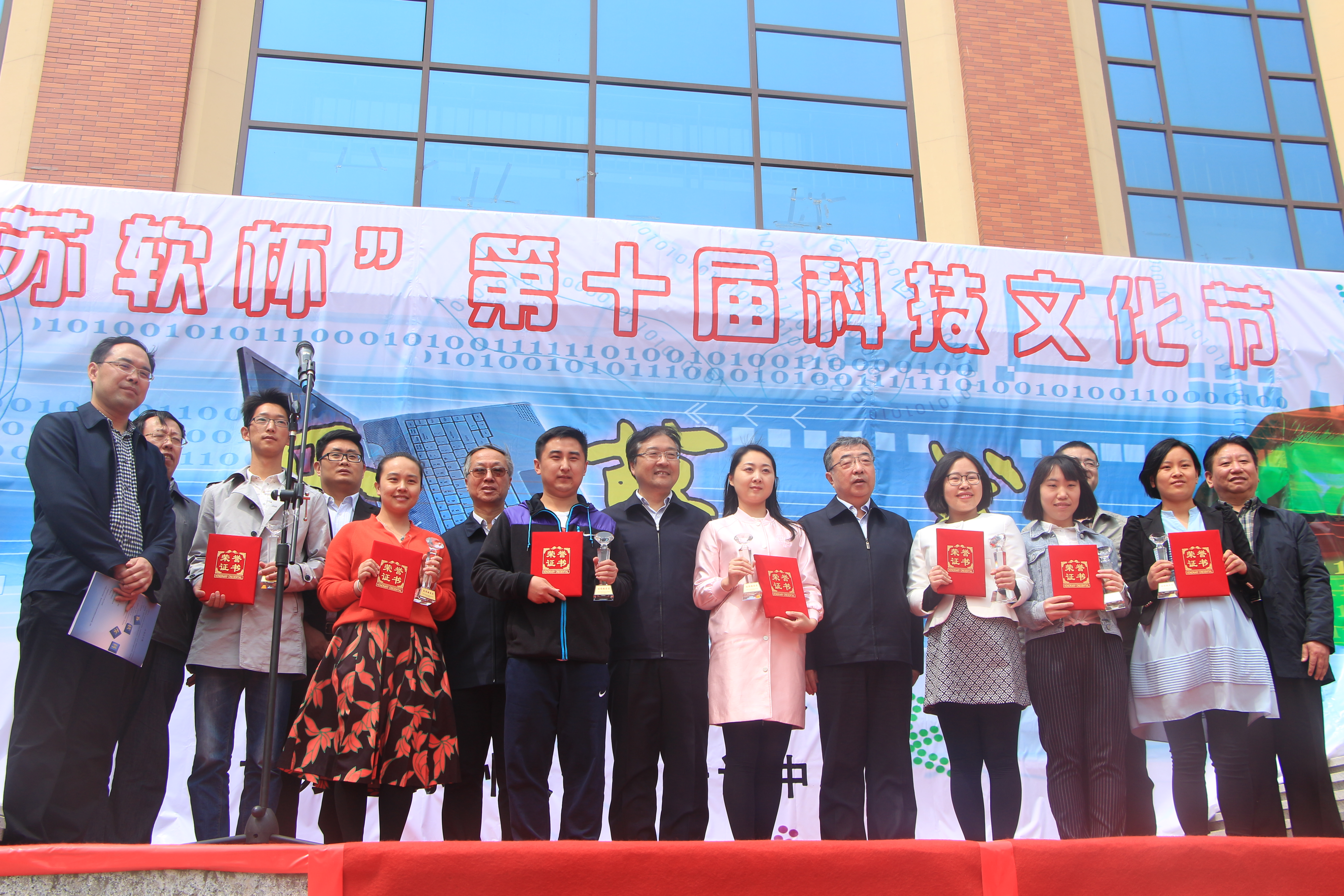 陈俊杰经理宣读了“关于表彰员工科技竞赛优秀指导教师和优秀辅导员的决定”,主席台领导为获奖者颁发了奖状和奖杯。公司党委副书记池卫平介绍了本次科技文化节 的主要活动内容。本届科技文化节以“分享多元科技,传承经典文化”为主题,面向全校员工,在为期一个月的活动中,将开展科技学术、文化艺术两大板块的活 动,主要有“风雨十载 异域博览”国家与民族族风情博览会、中华魂系列活动之谁“语”争锋、“变装之夜”狂欢你的夏日青春舞会、“苏软杯”程序设计大赛、识 时通“辩”辩论赛、“硬件英雄”——拆装机大赛、行知讲坛系列讲座、“精彩世界,等你发声”影视配音大赛。