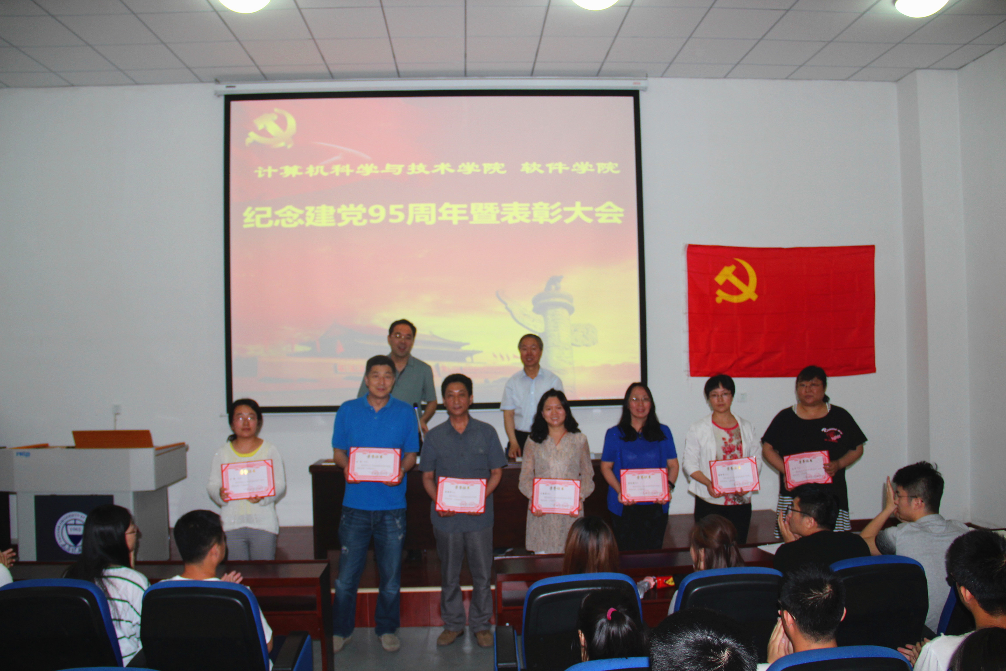 6月23日下午,计算机科学与技术公司党委、软件公司党委在学院报告厅联合召开庆祝建党95周年暨表彰大会,两个学院的党员参加了会议。会议由软件公司党委副书记池卫平主持。