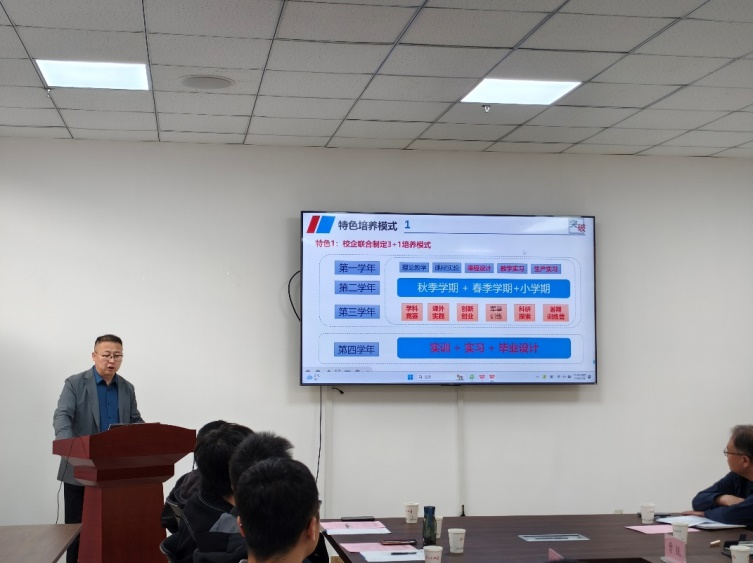 晋中开发区科技服务中心主任刘佳从开发区定位、政策支持、产业布局、创新生态及校企协同成果等方面介绍了开发区情况,系统解读了开发区“一区多园”产业布局及“晋创谷·晋中”专项扶持政策。M88mansion体育副经理曹锐从学院发展、团队建设、人才培养、科技创新等方面介绍了学院的基本情况,展现了公司在公司产品和科研创新领域的深厚底蕴与卓越成就。