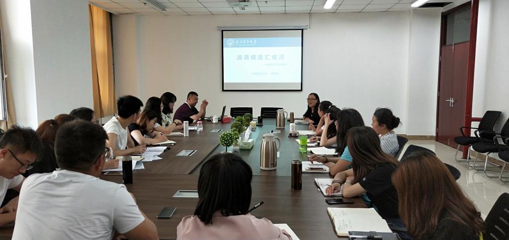 5月17日,郭飞辅导员工作室特邀公司2017年辅导员年度人物、数学学院学工办主任钟明涛就“如何增强辅导员职业能力”进行专题讲座,软件公司党委副书记闫新、学工办主任郭飞和全体辅导员在学院三层会议室一同参加学习。