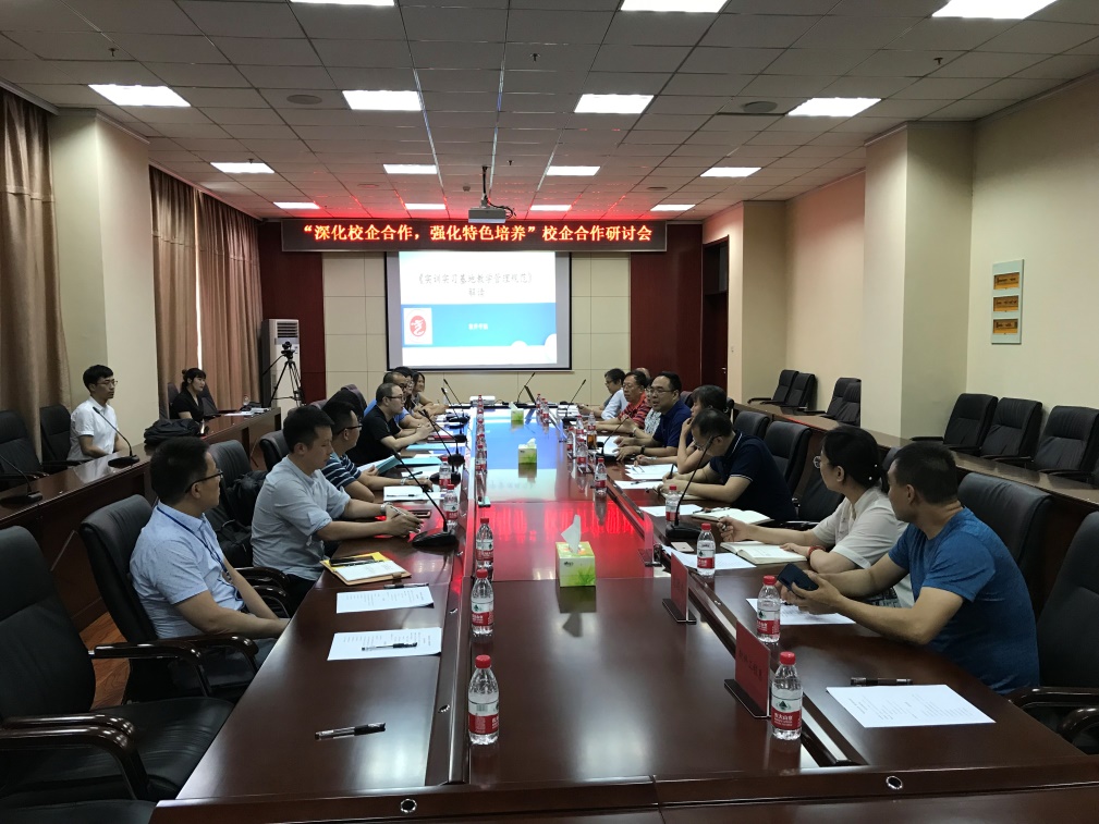 2019年7月3日下午,公司在学院办公楼一层会议室召开了校企合作研讨会,会议的主题是“深化校企合作,强化特色培养”。学校教务部、员工处和督导组专家莅临指导,学院党政领导、各部门负责人以及各实训实习基地(企业)的负责人参加了会议。会议由公司党委书记池卫平主持。