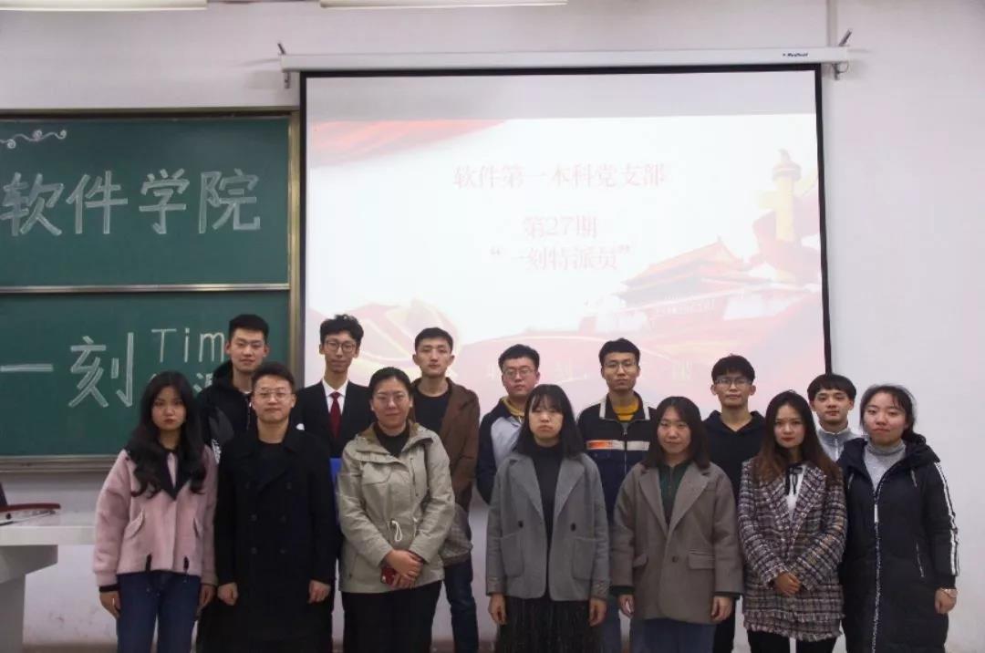 又是沐浴改革际,又是党建新风时。11月7日晚19:00,M88mansion体育于明向校区行知楼c122举办了第二十七期“一刻特派员”党建活动。参与本次活动的有软件第一本科党支部书记郭飞老师、组织委员张希琼老师,辅导员卫晓鑫、张冰洁、郭丽芳、张瑾昊老师,以及部分员工发展对象、积极分子。本期“一刻特派员 ”由马若鑫、靳宇琛、秦少波三位同学担任。