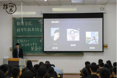 接着两位主席及各部门部长、部员依次上台发言,表明加入科协,是登上了一个新的平台,与科协相遇是一场美好的邂逅,相信在这个大家庭中,大家同心协力,定能塑造新的自我,收获成长。