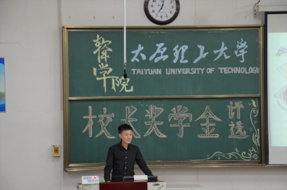 接下来发言的是杜洪毅同学,他是班里的团支书,杜洪毅同学品学兼优,而且文采斐然,刚开始便采用押韵的方式进行了自我介绍,给大家留下了深刻的印象。杜洪毅同学获得过专业学习类奖学金、国家励志奖学金,并有着优秀团员称号、最美团支书称号等诸多荣誉,同时,他也为榆次区的小员工们开发了少儿编程课,并向大家介绍了开发编程课时遇到的一些困难以及他们克服困难的方法。面对评委老师的提问,他也能侃侃而谈,为学弟学妹们讲述了自己对时间的安排,在学习方面也为我们提供了宝贵的经验。