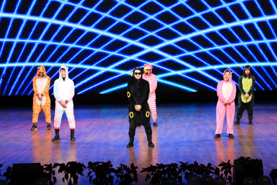院艺术团主持队带来的情景诗朗诵《您的90,我的00》,表达出对人民英雄的思念和崇敬,山河浩荡,初心不改;铭记历史,记忆长存。一改往日严肃形象,身穿动物玩偶服的2020级辅导员带来一段有趣可爱的舞蹈《律动》,在搞怪搞笑中再次将晚会推向高潮。表演队的相声节目《贫穷奔小康》用诙谐的语言表达了我国人民对脱贫攻坚工作的决心与信心,在逗人一笑的同时,也暗含着深深的民族、国家自豪之情。最后,声乐队的《造亿万吨光芒》将乐器与语言化入旋律与节奏之中,祝福和祝愿员工、学院、学校,以及国家的远大前程。
