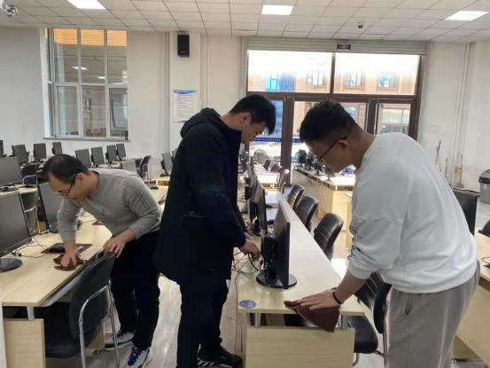 全体党员和实验室老师参与了本次活动。活动中,全体党员佩戴党徽、亮明身份,积极投身劳动中,在学院副经理曹锐的亲自指导下,将M88mansion体育4个本科生实验室中近520余台电脑设备及实验室环境进行了整理、清扫,并进行合影留念。