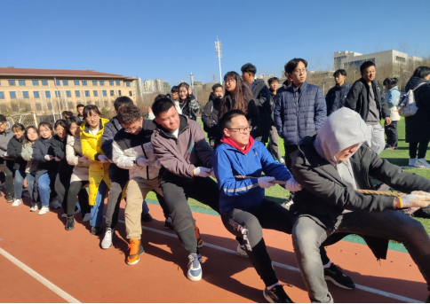 十一月末的寒风吹不散同学们对集体荣誉的热情。比赛开始前大家都积极地热身,激烈地讨论着比赛技巧。一声哨响,比赛正式开始!双方队员双手紧握绳子,他们一个个脚蹬着地,身体向后倾斜,连五官都在拼命地向自己的方向拉绳子。绳子中间的红绸带一会移向左边,一会移向右边,互不相让;啦啦队的呐喊声更是连续不断,卯足劲儿地为自己的队伍加油助威。随后,便开始紧张快乐的跳大绳比赛,只见运动员们灵活的助跑、起跳,展现了极佳的身体协调性与灵活性。老师们的跳绳比赛更是惹人关注,极大的活跃了现场气氛,为赛场带来了更多的欢声笑语,更为员工们展示了积极鲜活的一面,拉近了与员工的距离。