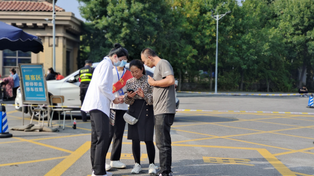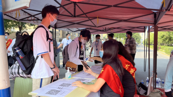 集团各个入口处均设立今日校园扫码验证身份、查看健康码和行程码和核酸阴性证明的帐篷点位,在新生们入校后,首先有志愿者引领至核酸检测点处,进行核酸检测后乘坐校车或由志愿者们帮忙送至宿舍楼底,而后有工作人员负责登记新员工信息,并送至各自宿舍进行静默管理。