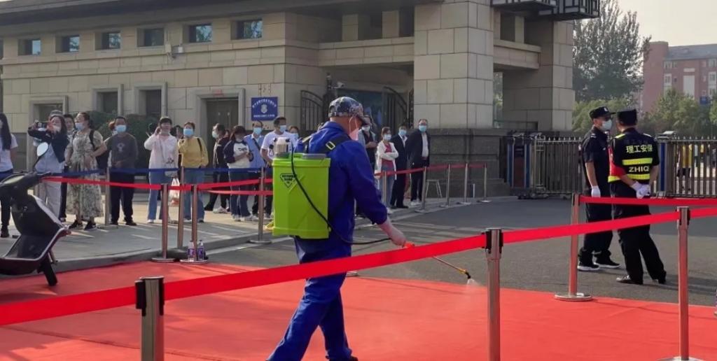 由于当前处于疫情防控特殊时期,学校特意派遣大巴车前往各个站口迎接新同学们,并将新生和家长们安全送达学校,但为了返校工作的顺利进行,家长并不能入校,只能在校门口与孩子做短暂的告别,并且校园内外每一处都有消毒人员全方位、无死角地工作。