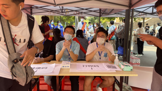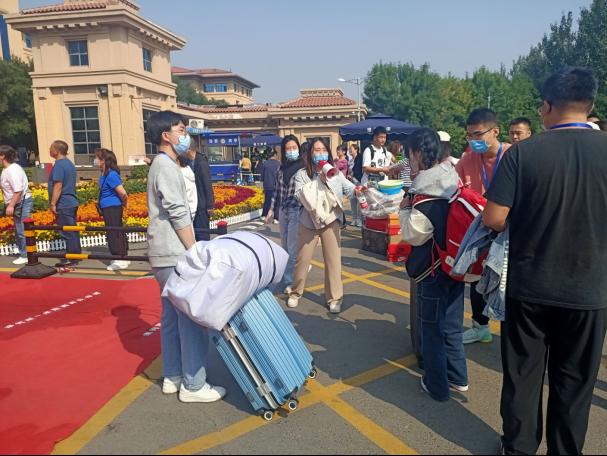 随着越来越多的新同学报道,志愿者们的工作也越来越忙碌,但没有人有怨言,每个志愿者尽管筋疲力尽,但仍然毫不退缩,一次次帮忙搬运行李,为新同学们排忧解惑。在这期间,郑强书记以及学校、学院许多领导老师多次到达迎新点对志愿者们表示关照与慰问,也与校门口的家长们进行了友好的交谈,让家长们更好地了解了孩子的学校,减少了家长们对孩子的担忧与焦虑。