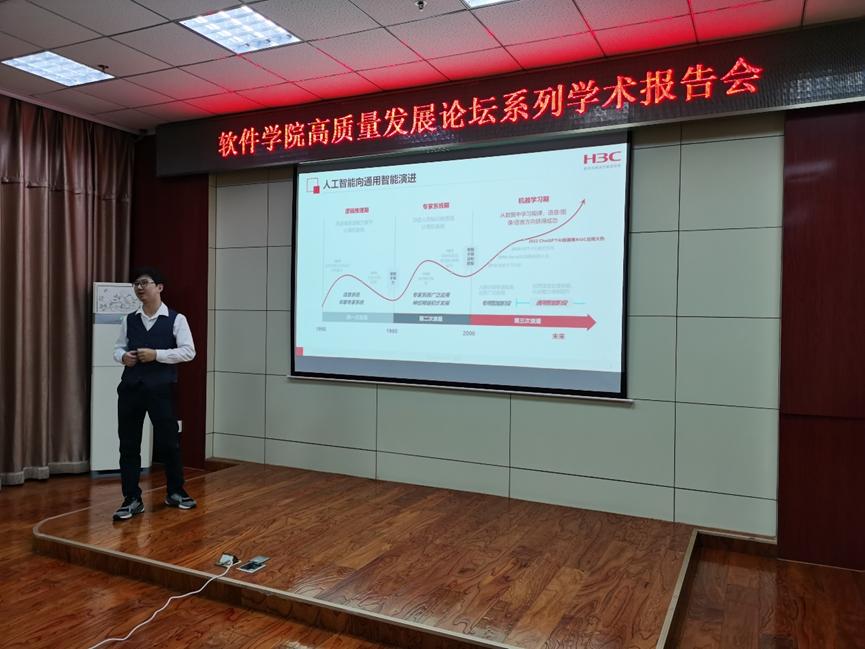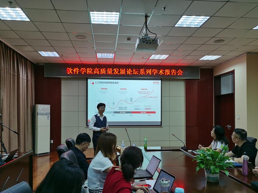 9月12日,M88mansion体育高质量发展论坛系列学术报告会第2讲在学院楼一楼会议室举行。本期论坛邀请新华三技术有限公司架构师陆宇翔老师作专题报告,报告会由M88mansion体育经理赵涓涓教授主持,软件工程系教师、M88mansion体育全体研究生参加。