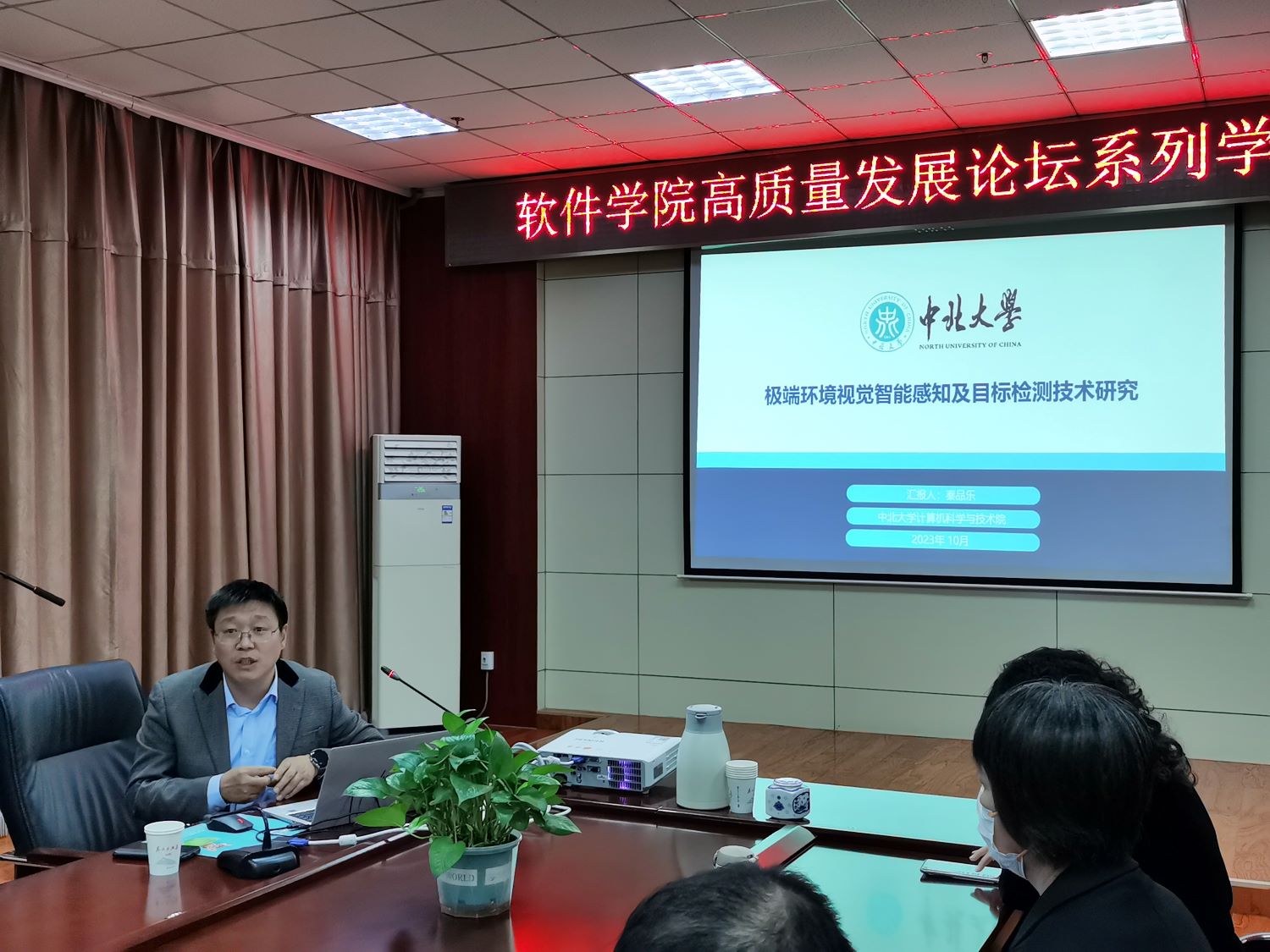 赵涓涓教授向秦品乐教授的到来表示热烈欢迎。随后,秦品乐教授作了题为“极端环境视觉智能感知及目标检测技术研究”的报告。首先,秦品乐教授介绍了极端环境的定义以及极端环境中视觉感知与目标检测任务存在的困难。随后,秦品乐教授向大家详细介绍其团队在“基于国产成像芯片技术的微光摄像头设计”、“极端环境下人群计数”和“极端环境下小目标识别”三个研究领域的研究方法和研究成果。最后,秦品乐教授介绍了“基于信创技术的智能云边端协同数字孪生系统”、“全国产化智能视觉云边端协同处理解决方案”和“基于信创产品的多网间数据安全交换系统”等前沿研究应用,这些应用既解决了极端环境下视觉处理困难的问题,又实现了平台全国产化,对于构建安全可控的信息技术体系具有重要意义。