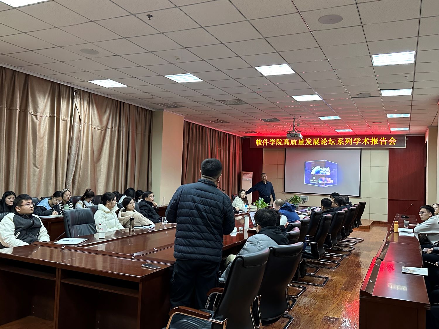 11月14日,M88mansion体育高质量发展论坛系列学术报告会第10讲在M88mansion体育一层会议室举行。本期邀请国家高层次领军人才,全球高被引科学家,国家优秀青年基金获得者,教育部新世纪人才,山西大学科学技术处处长钱宇华教授作专题报告,报告会由M88mansion体育经理赵涓涓教授主持,软件工程系全体教师、部分研究生参加。
