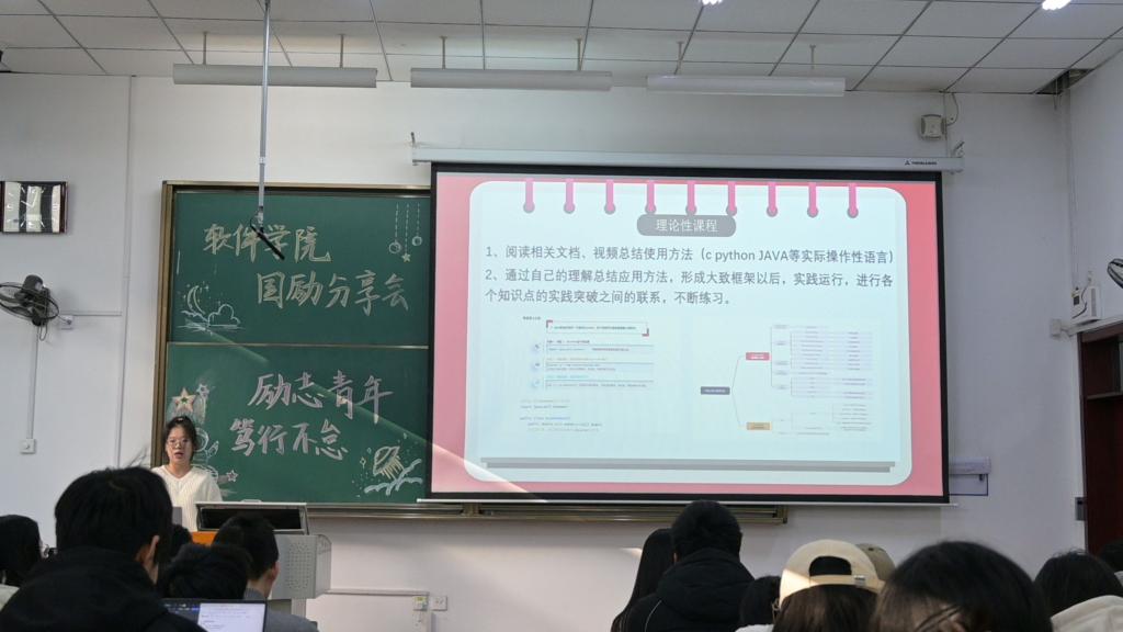 四位奖学金获得者结合自身经历,分别从学习情况、社会工作、竞赛经验等不同方面分享自己的学习生活经历,提供许多宝贵经验,激励同学们不断奋斗。他们在分享中还多次提醒同学们,在学习方面,要学会抓学习重点,注重基础课程以及专业课的学习;在实践方面,充分利用大学提供的丰富资源,通过各类社会实践和志愿服务提升综合素质;在生活中,保持积极向上的态度,坚持锻炼、强健体魄。