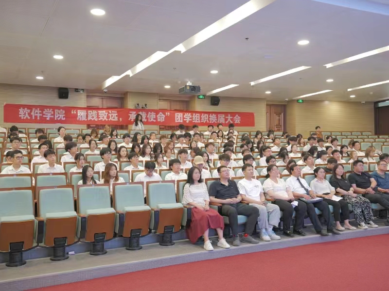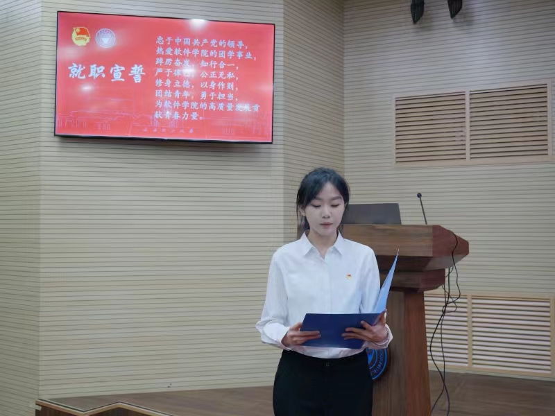 郭飞和张瑞琪分别宣读了新任主席团和新任部长任命的决定,希望他们能带领团学机构传承软件精神,赓续软件风采,带领广大同学奋力书写为中国式现代化挺膺担当的青春篇章。