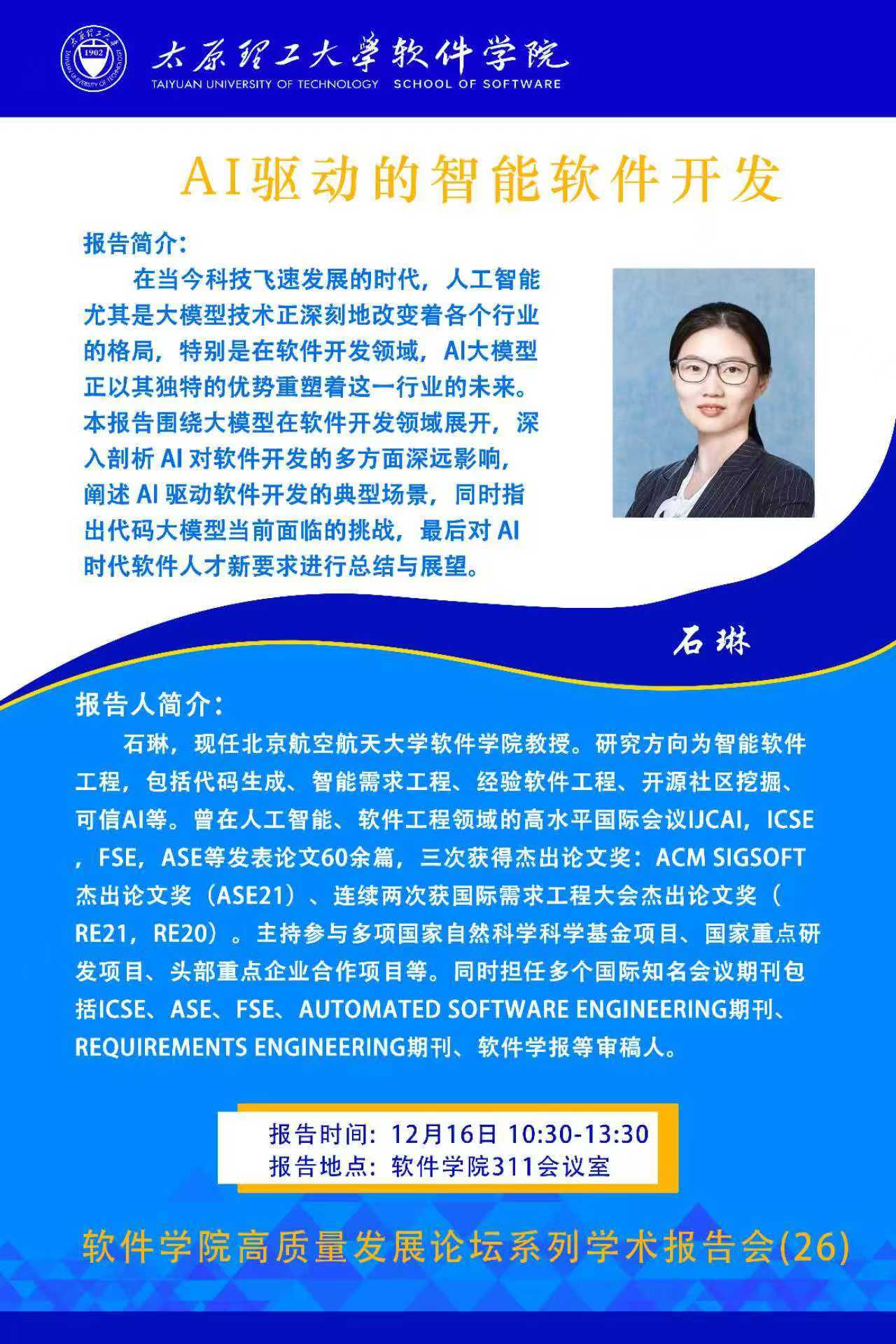 M88mansion体育高质量发展论坛系列学术报告会(二十六)—《AI驱动的智能软件开发》