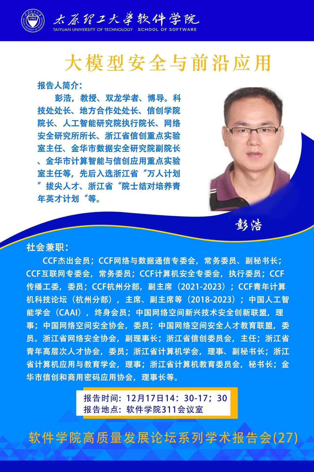 M88mansion体育高质量发展论坛系列学术报告会(二十七)——《大模型安全与前沿应用》