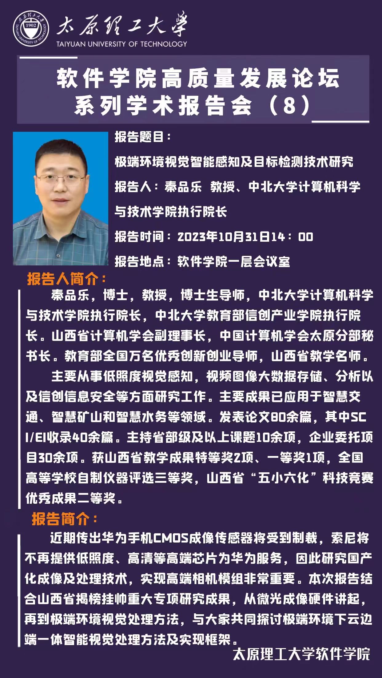 M88mansion体育高质量发展论坛系列学术报告会(八)—《极端环境视觉智能感知及目标检测技术研究》