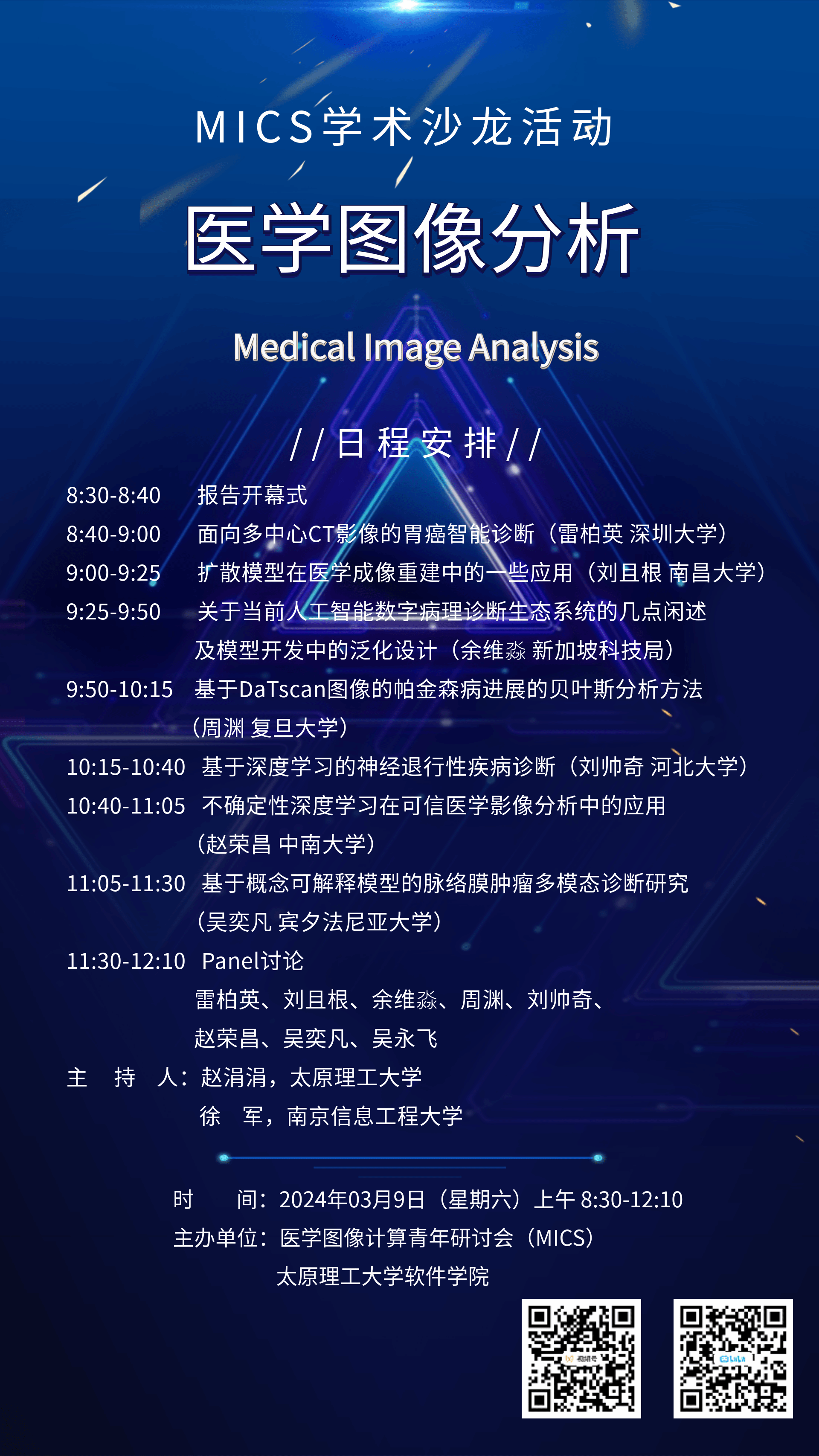 3月9日,MICS学术沙龙活动——“医学图像分析”顺利在线上举办。本次活动由M88mansion体育主办,学院经理赵涓涓主持,邀请深圳大学雷柏英教授、南昌大学刘且跟教授、新加坡科技局余维淼教授、复旦大学周渊老师、河北大学刘帅奇教授、中南大学赵荣昌教授、以及宾夕法尼亚大学吴奕凡博士作专题报告。