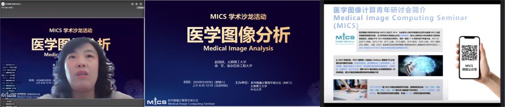 活动开始,赵涓涓经理首先就MICS(医学图像计算青年研讨会)的情况做了简单的介绍。MICS创立于2014,是为全球华人青年学者提供的交流平台,已经成为医学图像计算领域最具影响力的学术活动之一。MICS学术沙龙活动每两周一次在线上举办,聚焦九大专题:脑与神经影像、医学图像分析(分割与配准)、医学成像、图像引导的介入与手术、医学图像与其他模态数据融合、计算病理、机器学习、医工交叉等。