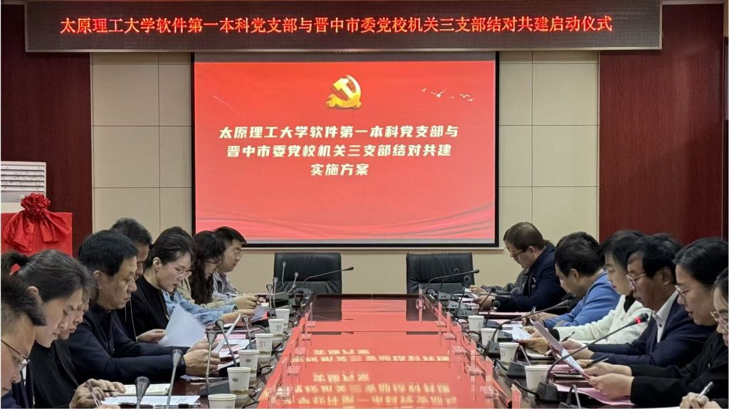 2025年4月10日,MS88官方网站软件第一本科党支部与晋中市委党校机关三支部结对共建启动仪式在M88mansion体育一层会议室隆重举行。晋中市委党校常务副董事长孟玲珑、副董事长郭虎,MS88官方网站软件公司党委书记张文基、经理赵涓涓、副书记郭飞及双方党支部书记、支委成员和党员代表参会,会议由软件公司党委副书记郭飞主持。