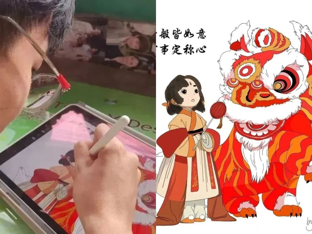 小女孩将祝福寄托于手中灯笼,醒狮的啸声响遏行云,唤起我们对未来的向往,在这片充满希望的土地上,祝愿我们携手共进、扬帆起航,以醒狮的勇气为榜样,以女孩的童真为本心,不断追求卓越,成为理想的守护者!