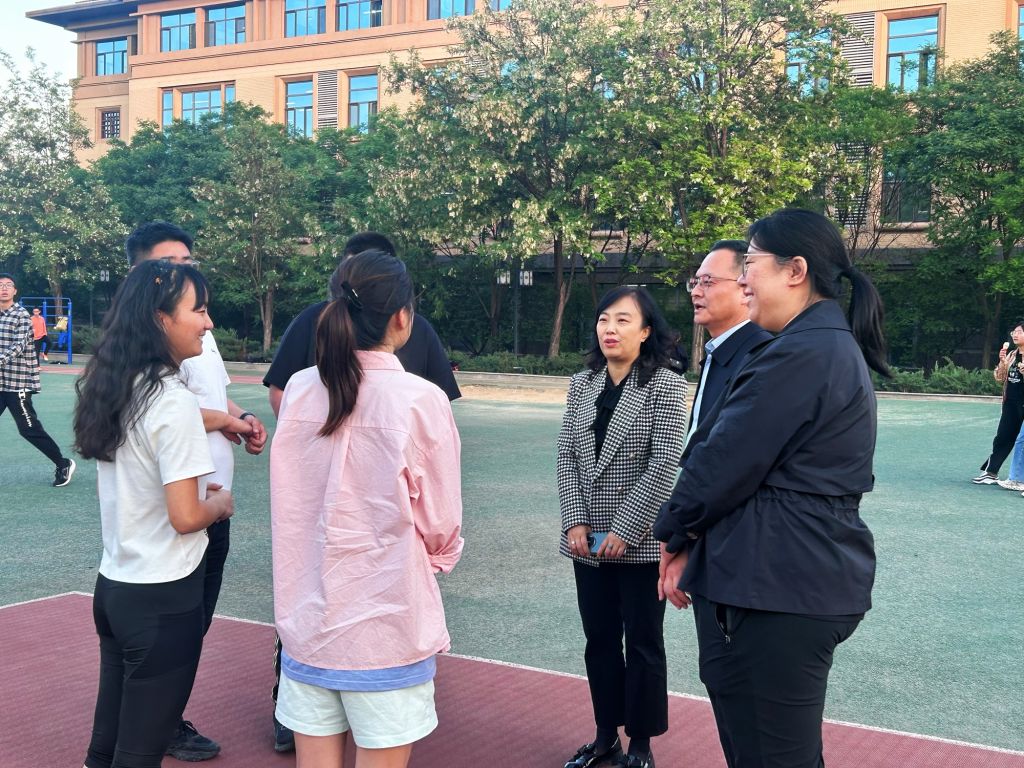 会后,学院方阵人员、运动员积极展开日常训练。5月7日,院领导亲临现场表示慰问,并带去了各种后勤补给。他们给予参训师生极大的支持与肯定,鼓励大家团结一致,坚持不懈,在刻苦训练中磨砺意志,展示青春风采。李栩特别指出,两位身处基地的大四同学也回校参与到本次校运会的赛事训练中,充分展现出软件学子的强大凝聚力和“软件人”精神。