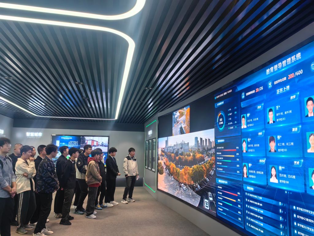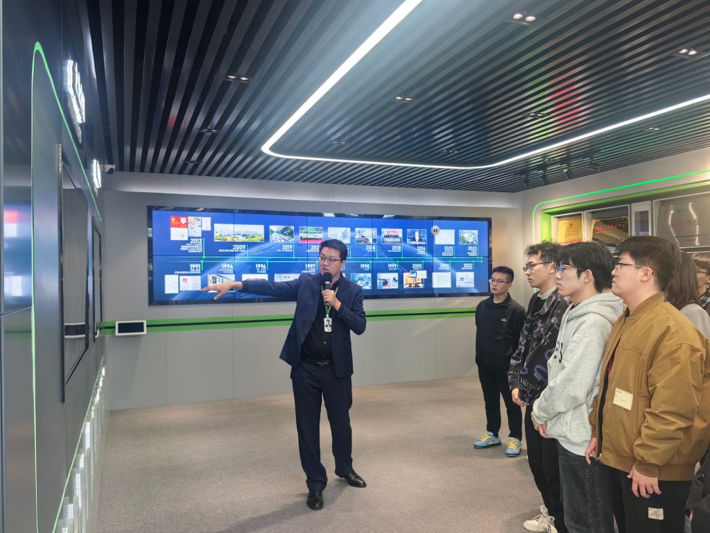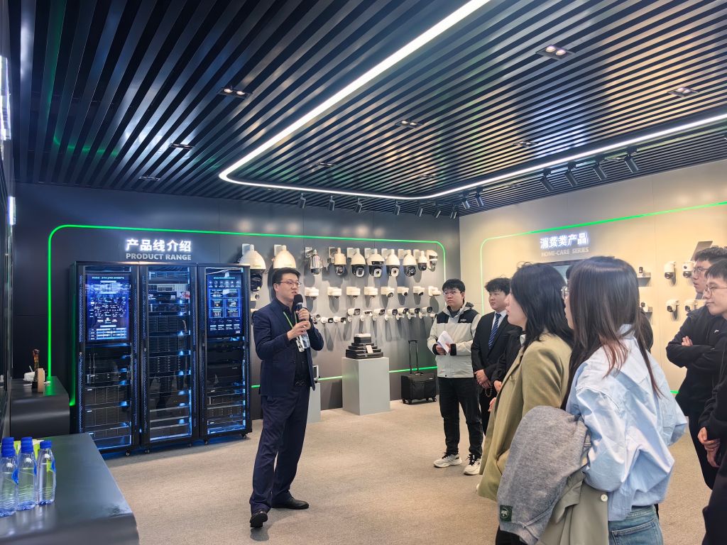 抵达企业后,企业邀请到已入职天地伟业10级员工籍文龙,现任天地伟业检法/监委行业部部门经理,带领同学们详细参观公司展厅,从公司的发展历程,到产品应用的各个领域和场景等方面细致介绍,员工们认真聆听学长的讲解并积极互动。