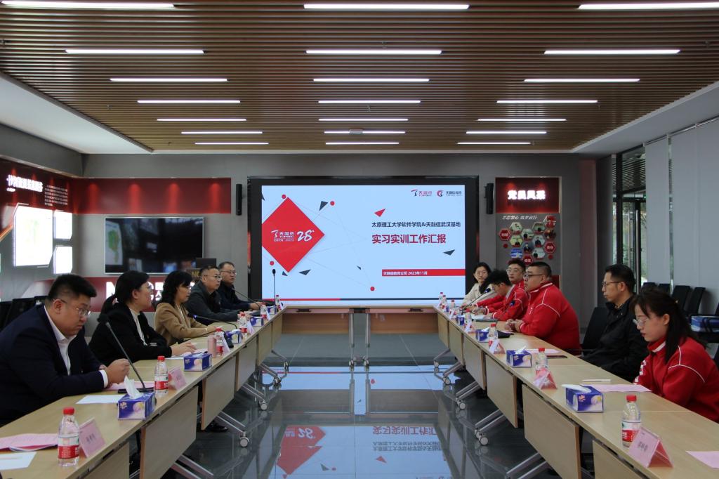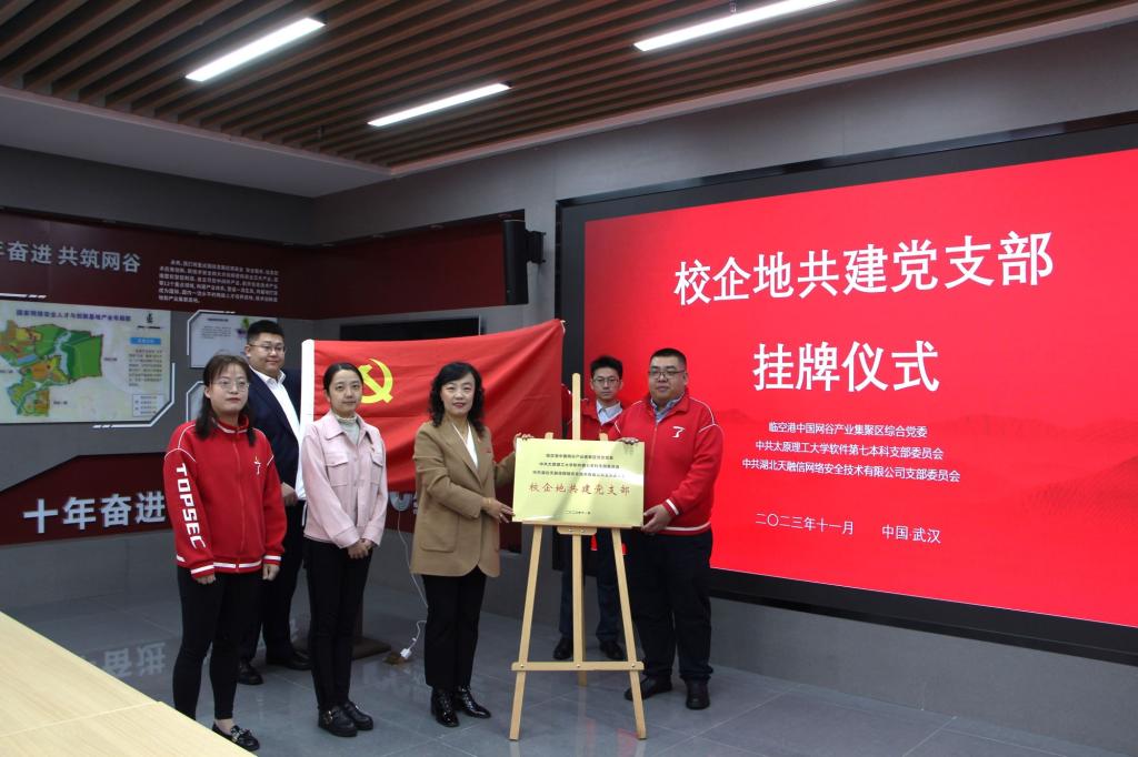 在武汉天融信实训基地,学院领导和老师们重点检查了基地的教学质量、团队力量、员工管理、员工就业等方面。同时,了解了实训基地在推进校企合作、产教融合等方面的做法和成果。在与实训基地负责人和员工代表的座谈中,学院领导强调了校企合作的重要性,希望双方进一步加强沟通合作,共同推动人才培养质量的提升。在实训基地期间,学院第七本科党支部与临空港中国网谷产业集聚区党支部、湖北天融信网络安全技术有限公司党支部举行了校企地共建党支部挂牌仪式。