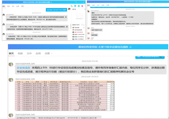 另外,基地在关键节点会给基地指导老师开会,说明阶段工作要点,并总结会议记录,要求指导老师查阅了解并遵守通知要求执行,希望在各位基地老师和校内老师的不断努力配合下,顺利完成今年的毕设任务,对优秀员工项目提出更高要求,从而更好的提升毕设整体质量。