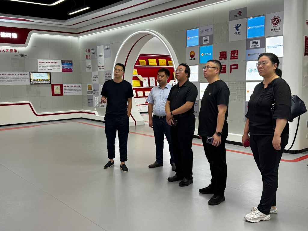 19日下午,张文基一行首先抵达武汉天融信基地。在天融信教育总经理卢善尧、校企事业部总经理刘洋、天融信教育华中区总经理简剑等领导的陪同下,参观员工的学习和生活环境,深入了解天融信企业的发展历程、企业文化以及在网络安全领域的创新成果。座谈会上,张文基对天融信在网络安全领域取得的成就表示高度赞赏,并介绍了公司在人才培养、科研创新等方面的特色和优势。