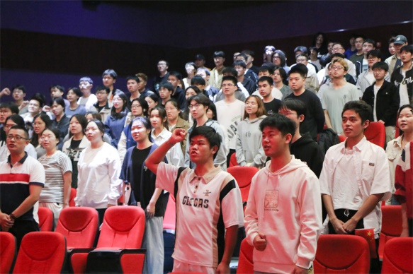 活动在菁蓉影院拉开帷幕,现场气氛热烈而庄重。同学们共同观看了爱国主义视频,视频中,一幕幕历史画面生动再现了中国共产党领导人民进行革命、建设、改革的伟大历程,以及新中国成立以来取得的辉煌成就。同学们聚精会神,被视频中展现的爱国情怀和奋斗精神深深打动,不少同学眼中闪烁着激动的泪光,心中涌动着强烈的民族自豪感和责任感。